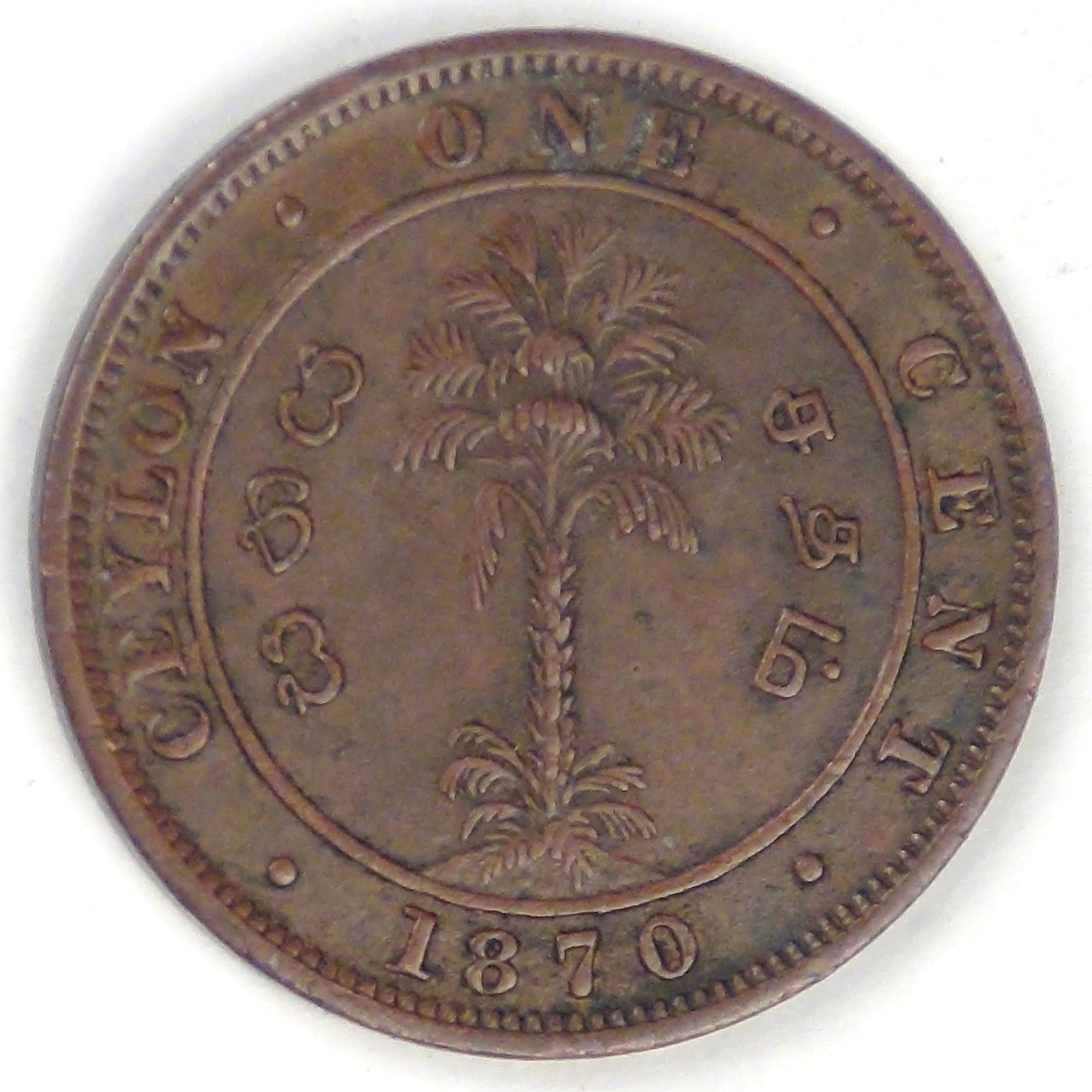 CEYLON - British Colony, Victoria, 1870 Cent, Extra Fine