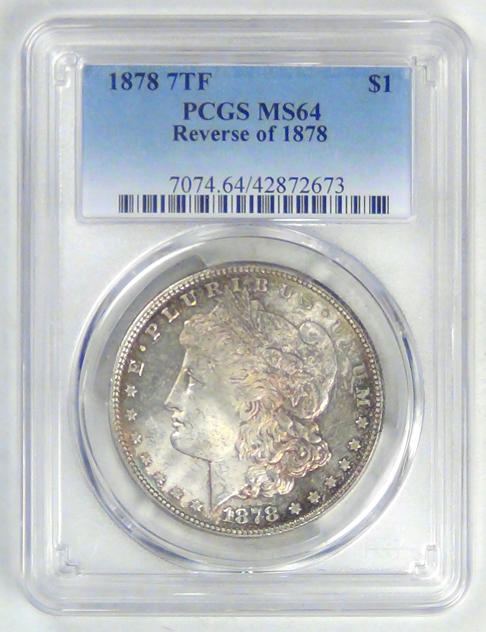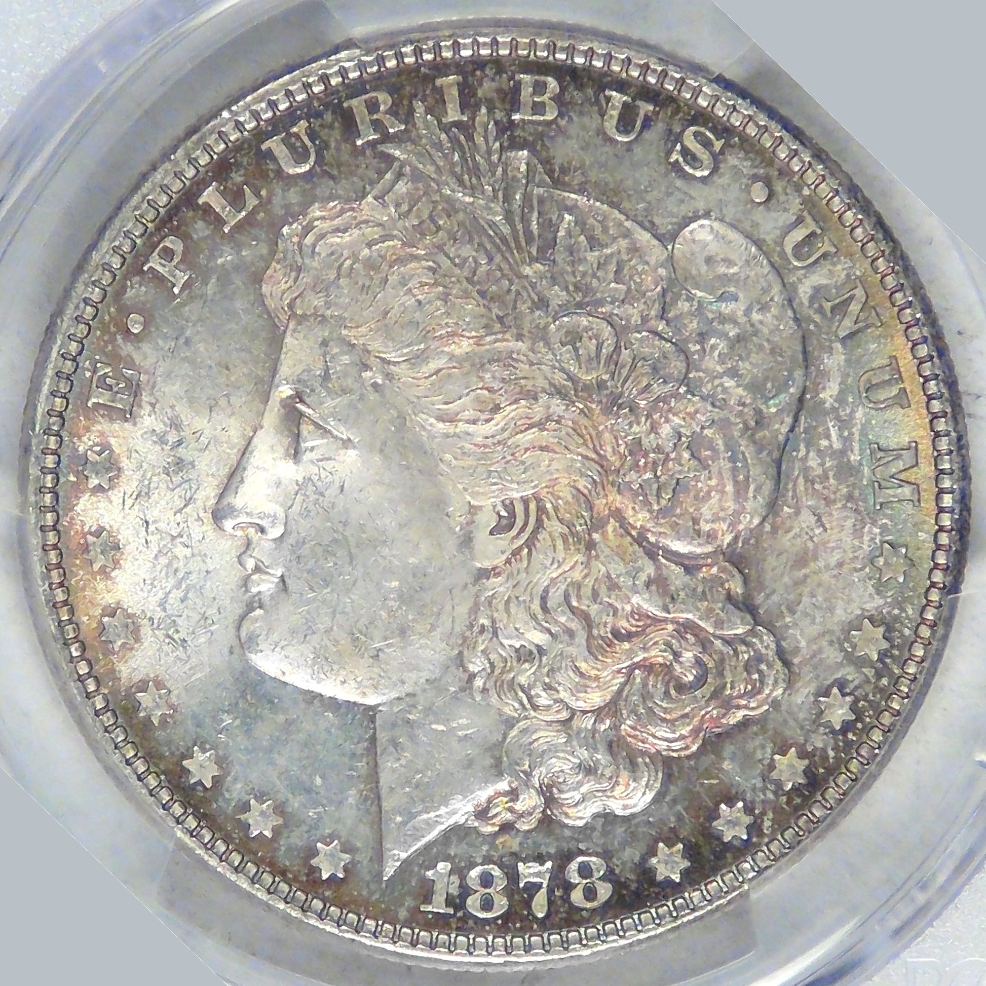 1878 7TF rev of 78 Morgan Dollar, MS-64 PCGS nice color