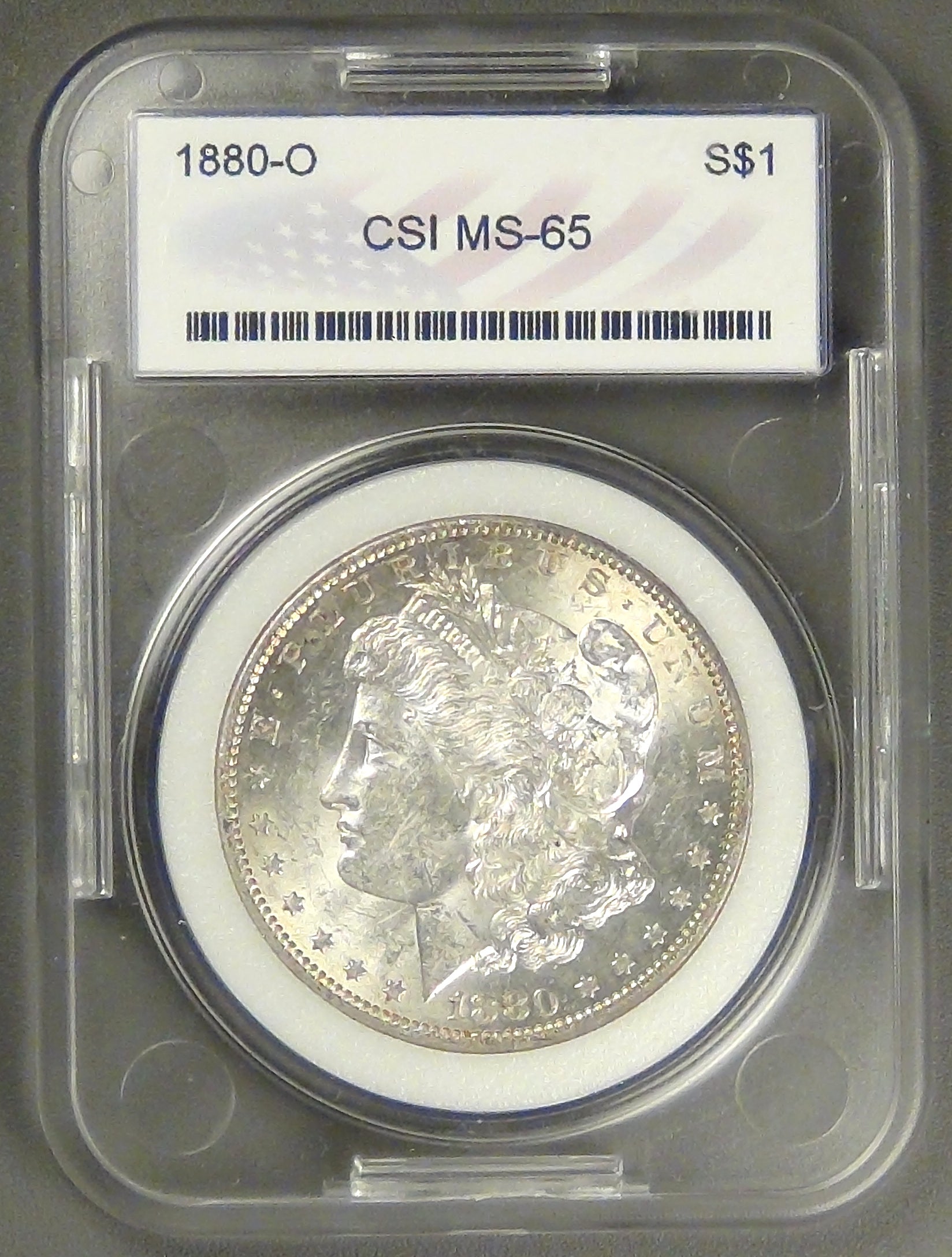 1880-O Morgan Dollar, AU-58 in CSI holder