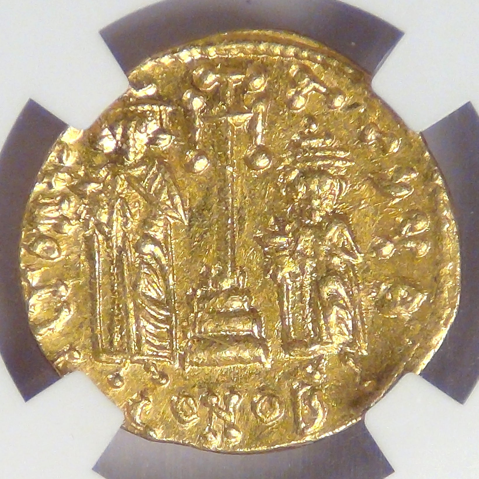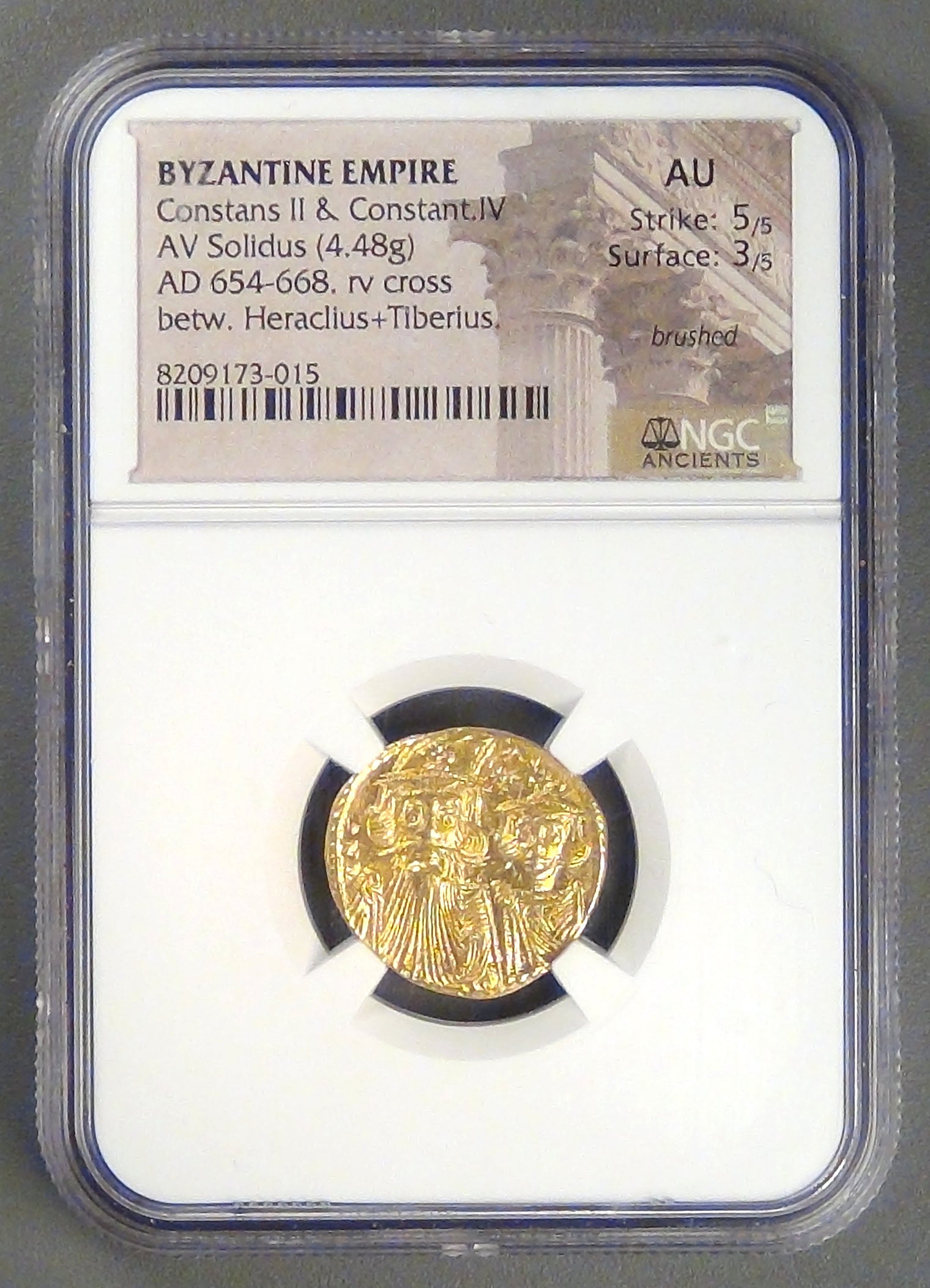 BYZANTINE EMPIRE, Constans II and Constantine IV (654-668 AD), 661-663 AD, AV Solidus, graded AU by NGC