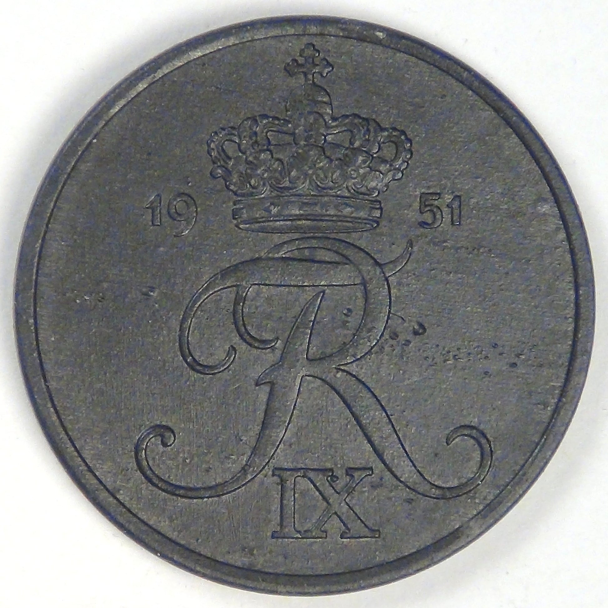 DENMARK, Frederik IX, 1951 ♥, 5 Øre, Choice Extra Fine