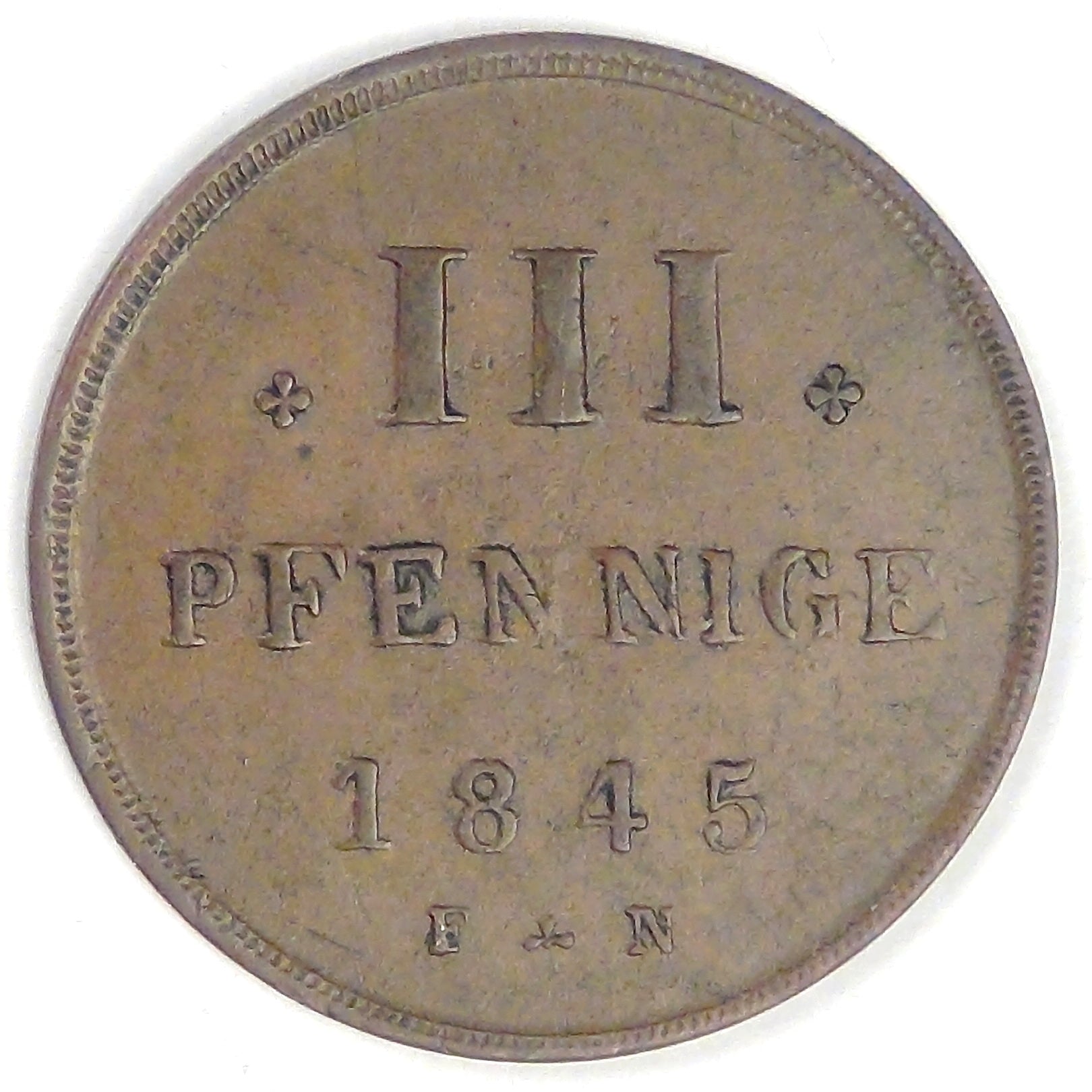 GERMANY - Mecklenburg-Strelitz, Georg, 1845, 3 Pfennige, Extra Fine