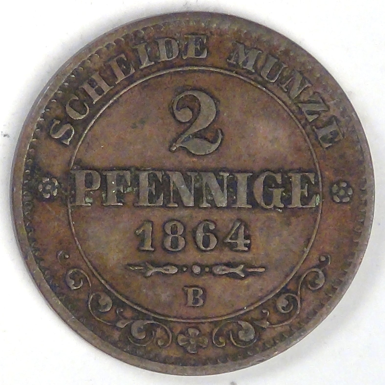 GERMANY - Kingdom of Saxony, Johann I, 1864 B, 2 Pfennige, Choice VF