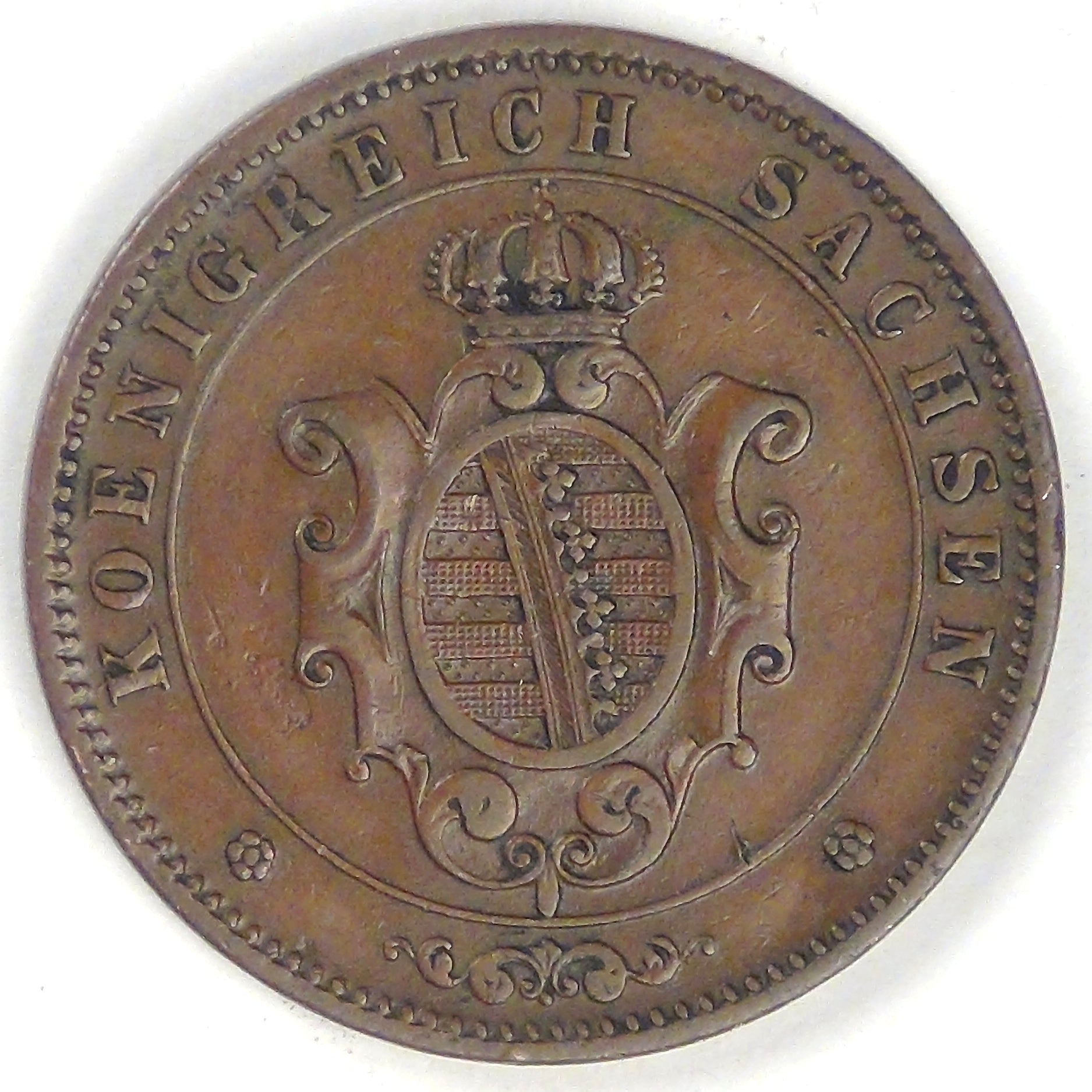 Obv: Crowned arms in baroque frame within circle with “Kingdom of Saxony” around