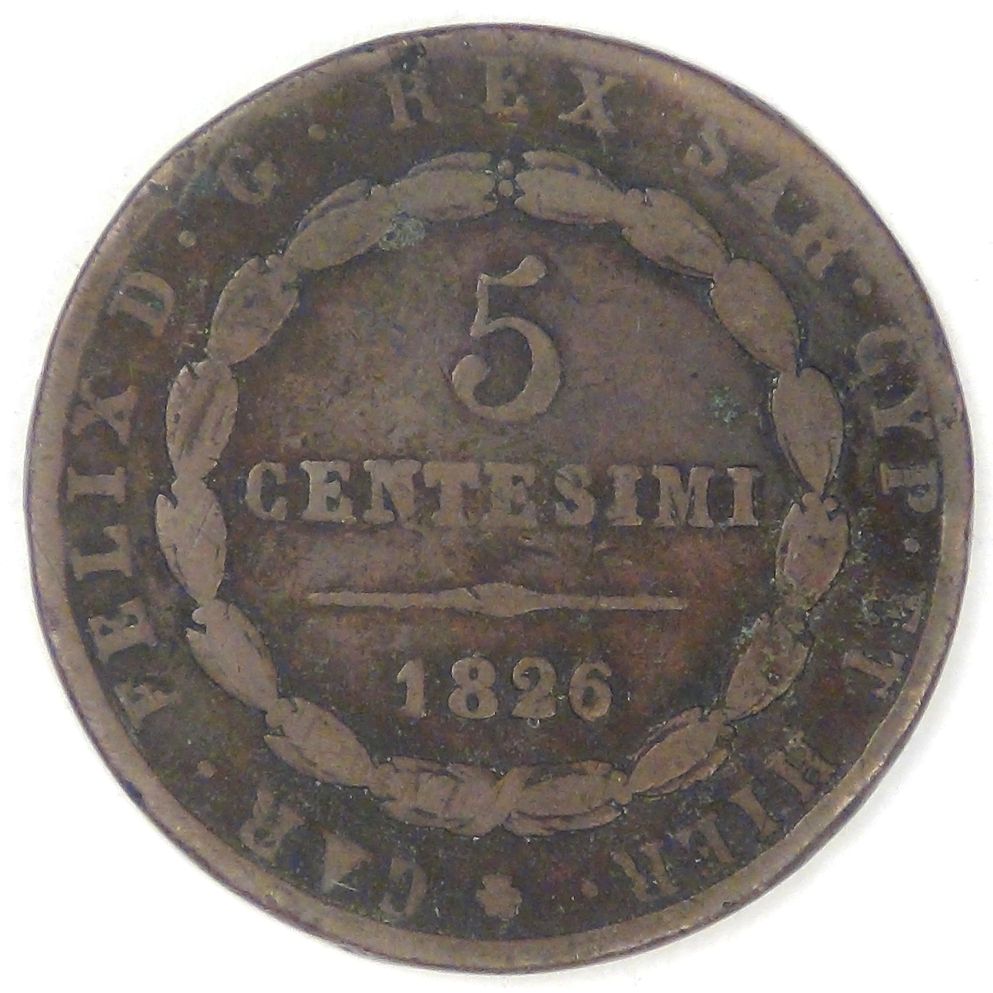 ITALY - Kingdom of Piedmont-Sardinia, Charles Felix, 1826 P, Centesimo, Fine