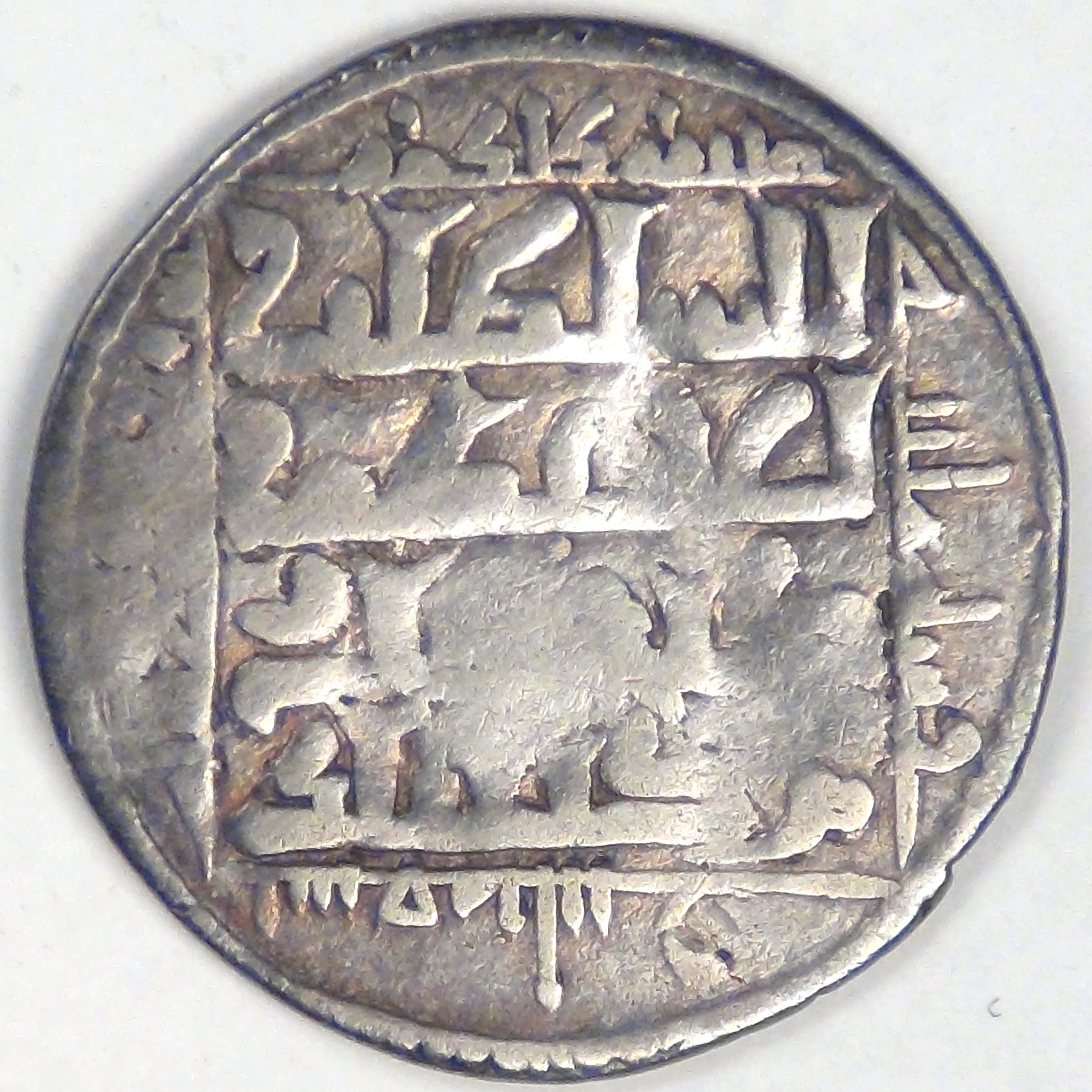 Rev: Inscription citing the ruler’s name with legend for the mint date around in the shape of a square