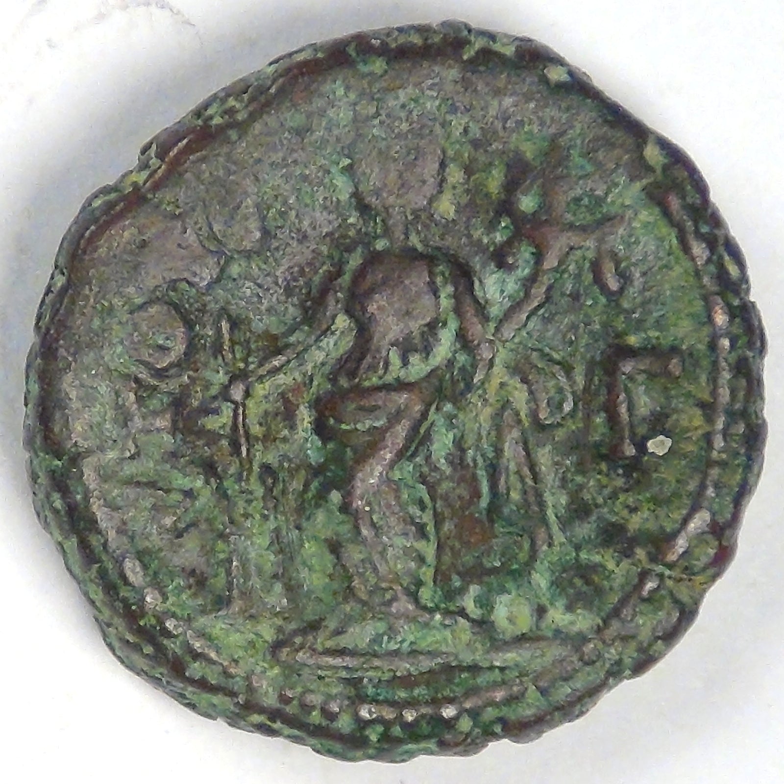 Rev: Tyche (Fortuna) holding rudder and cornucopia with εTOVC Γ (regnal year 3)