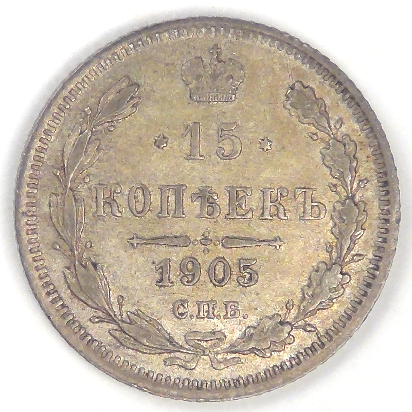 RUSSIA - Empire, Nicholas II, 1905 СПБ AP, 15 Kopeks, Almost Uncirculated