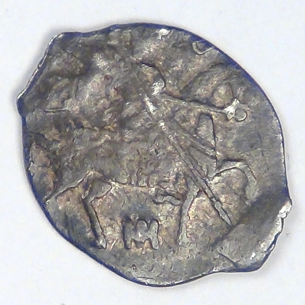 Obv: Crowned horseman holding spear on galloping horse with the letters (Б) left, О right and М below