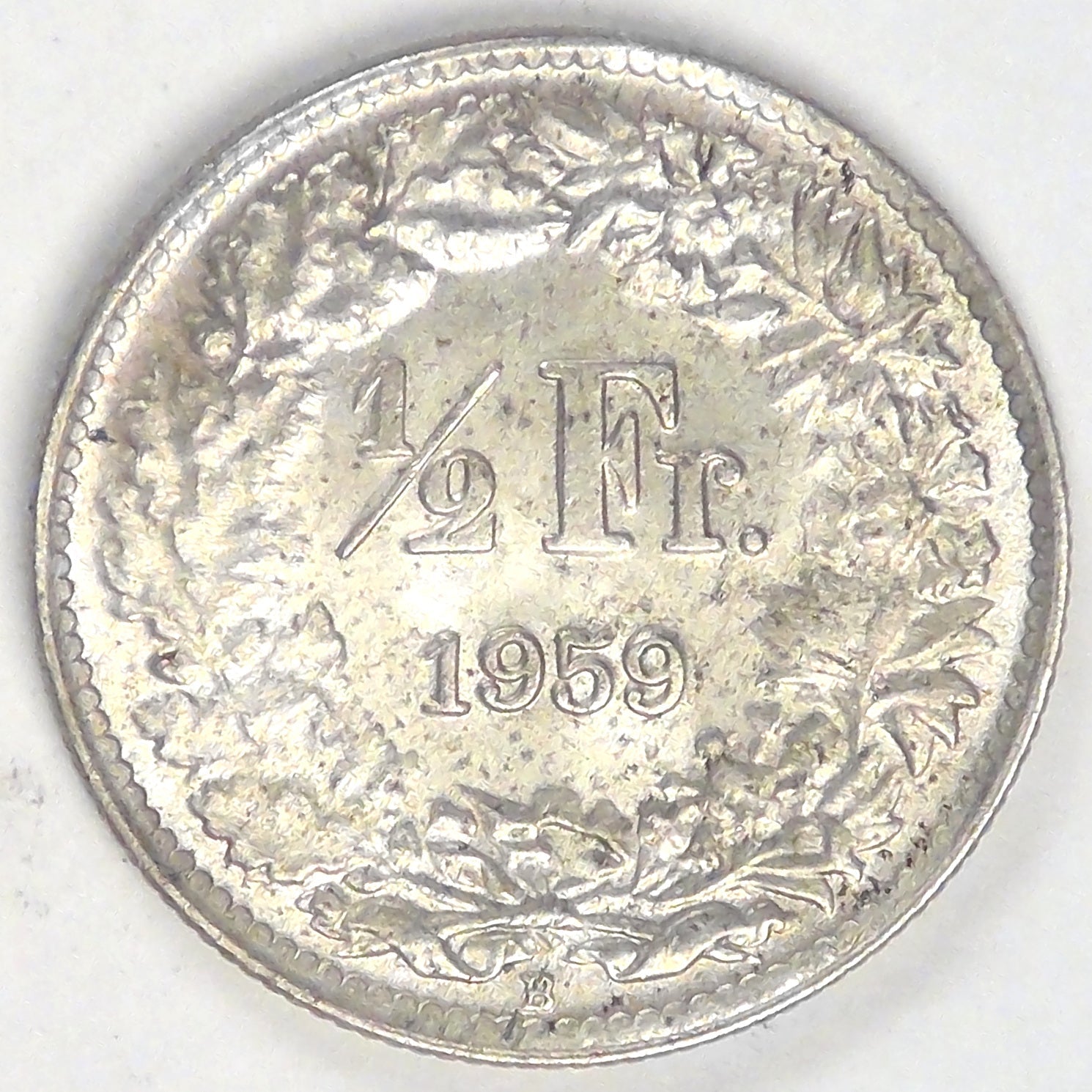 SWITZERLAND, 1959 B, ½ Franc, Choice BU