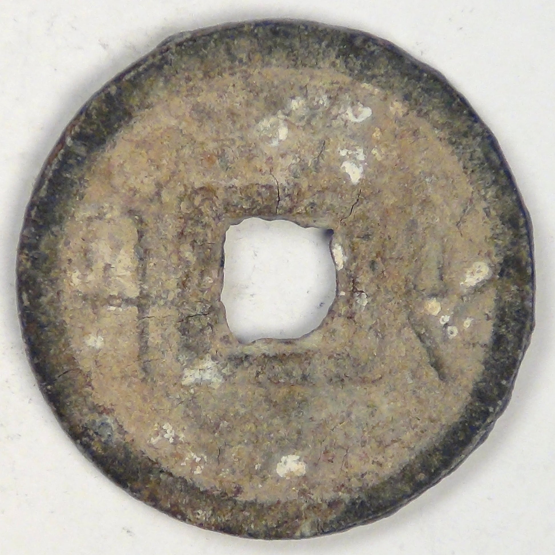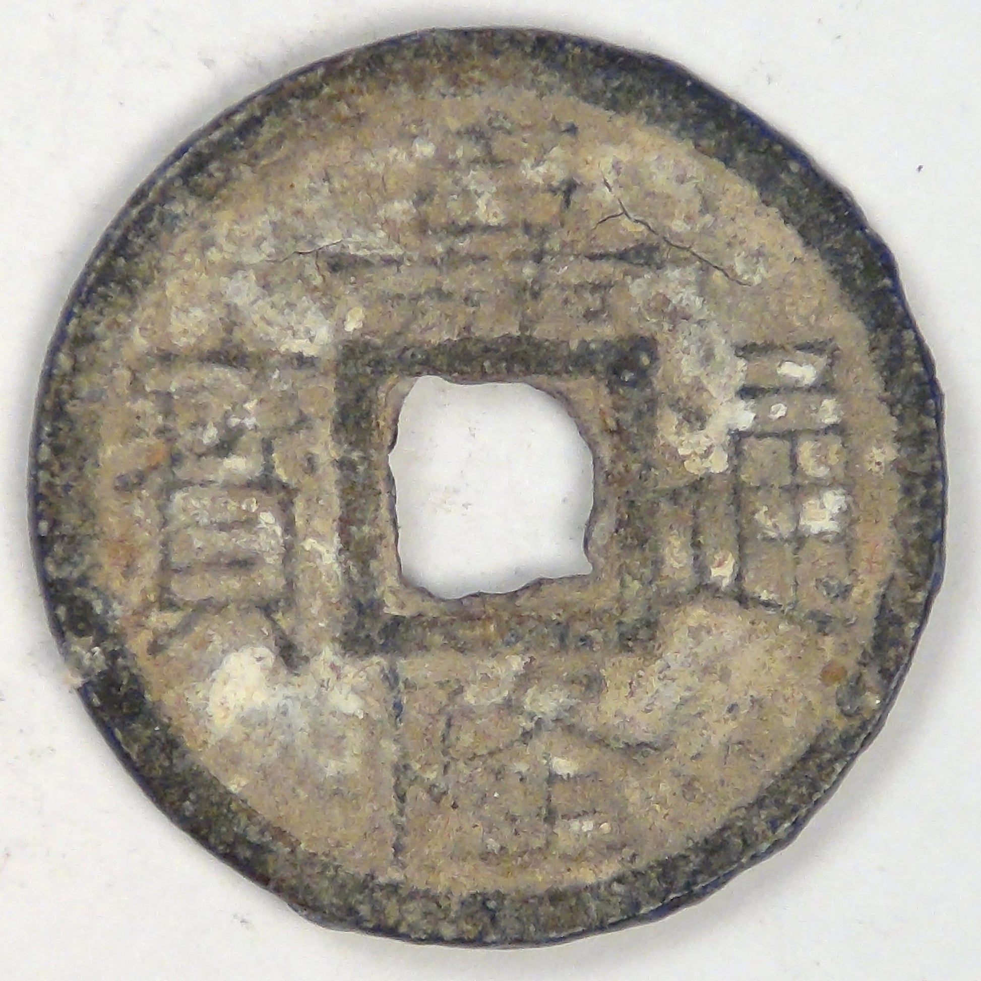 Obv: Four Chinese ideograms read top to bottom, right to left “Gia Long / Universal currency”